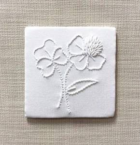 Class Description: Whitework is a broad term to describe a number of techniques worked in white thread on a white ground. Drawn threads, cutwork, pulled work, Hardanger, needlelace, and more fall under this category. In this class, you’ll learn a pulled stitch (diagonal cross filling), stem stitch, eyelets, and trailing stitch.