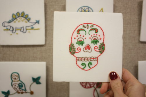 Learn chain stitch, satin stitch, whipped back stitch, and French knots as well as basic skills such as how to trace a design onto fabric and thread the needle. Personalize your piece by deciding where to place your stitches and picking your own colors. Choose from one of eight pre-drawn designs, or draw your own.